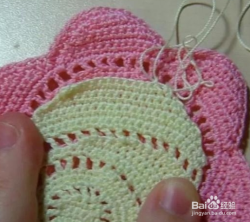 缝得不必太密,能固定住即可.排列好花样后用辫子连接.最后缝和肩膀处。(注意:大花的图解有误,只需要三层花瓣即可.)