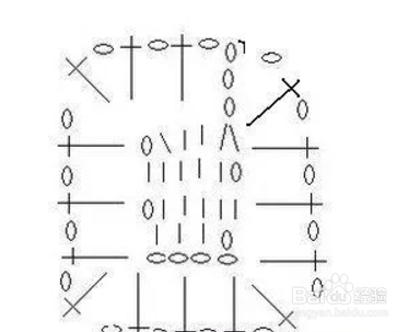 根据衣物的尺寸确定好这五条线的位置.按图解钩还所须叶子,大花,小花及花梗.将这些钩好的花样填充在这五条虾辫的框内,用针线固定.