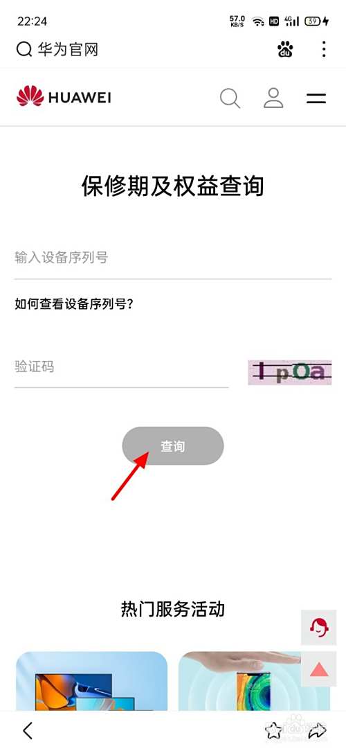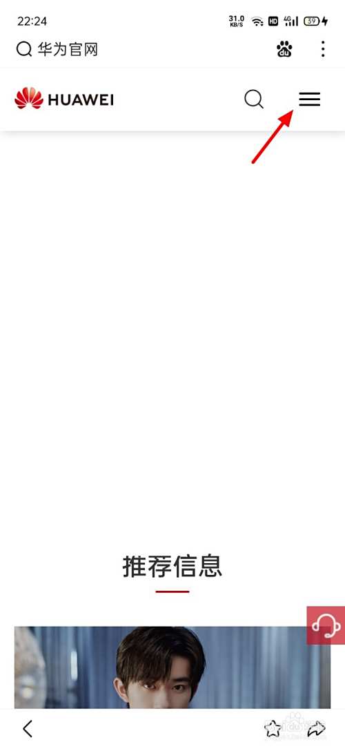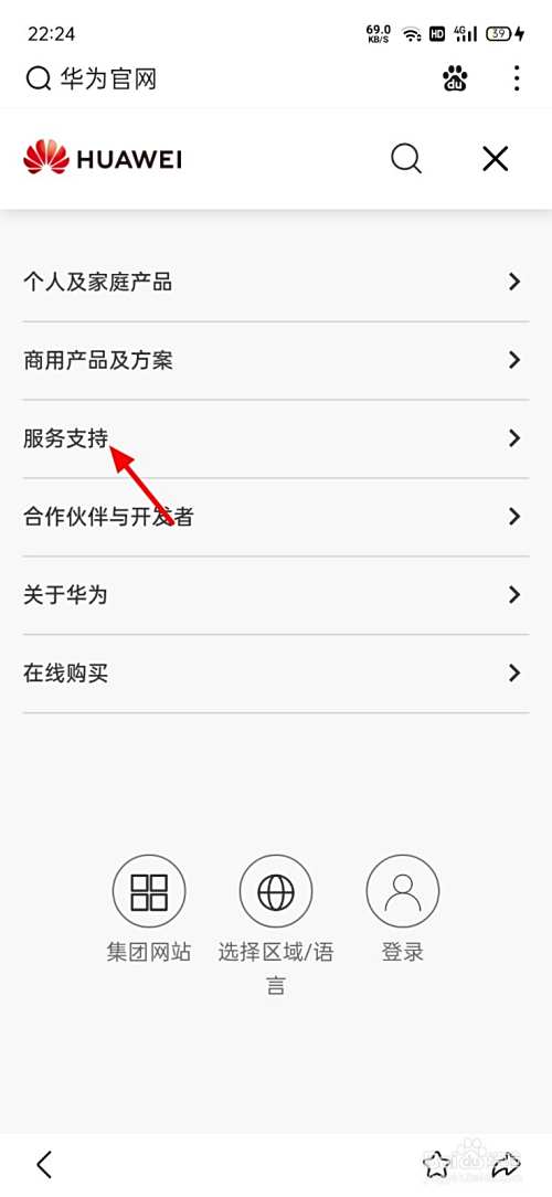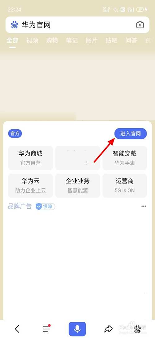在浏览器页面,搜索华为官网,点击进入官网。