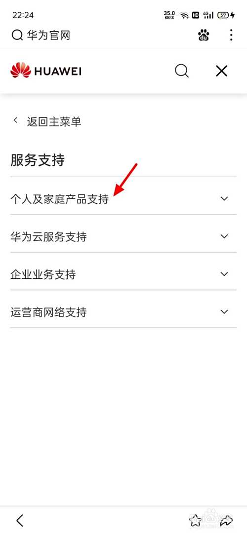 在服务支持页面,点击个人及家庭产品支持。