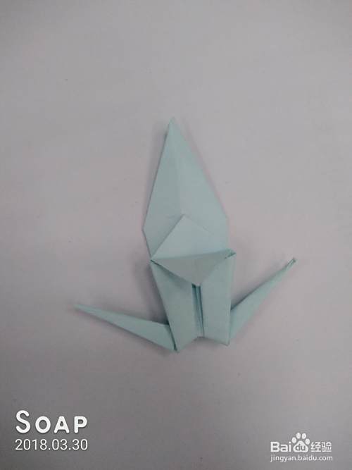 从中间打开这一边的纸,对着刚才折的印记折成以下图片形状。