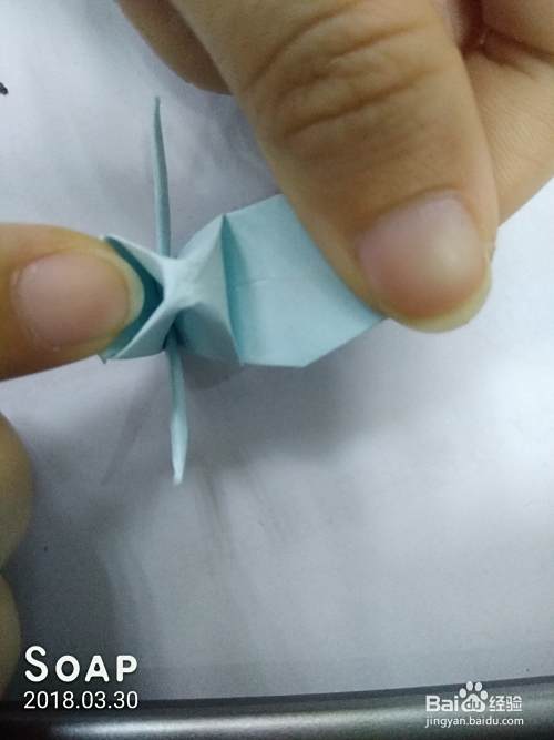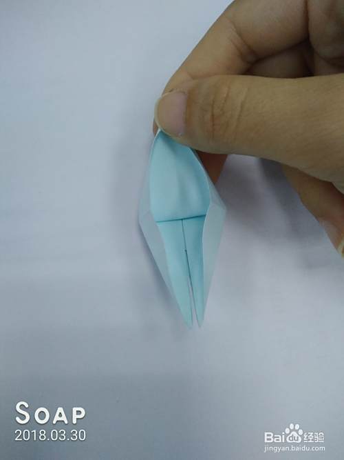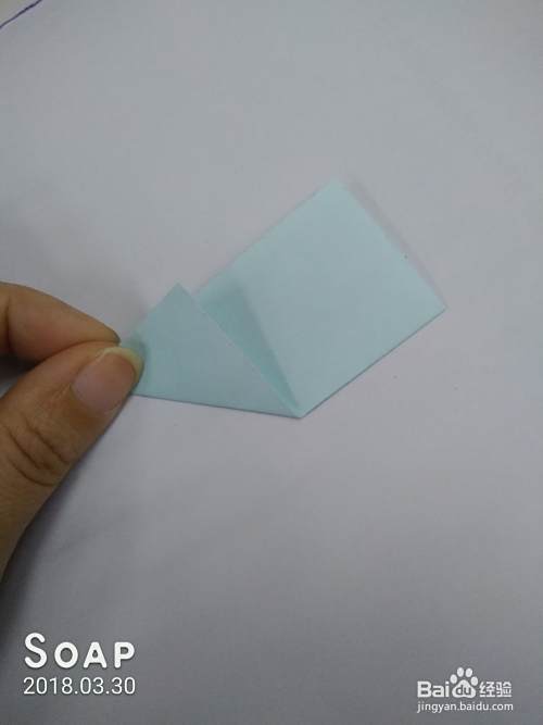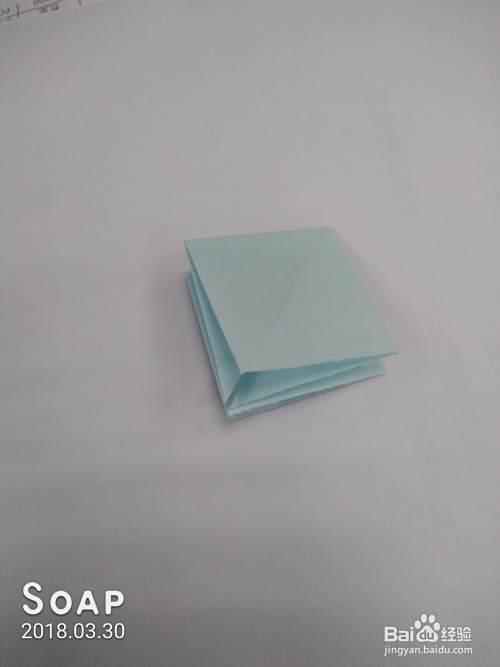 将一面掀下来,对准中间线条,将两边往里面折,注意不要弄错方向了。
