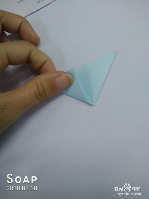 然后右边折一个三角形——翻过来——左边折一个三角形。