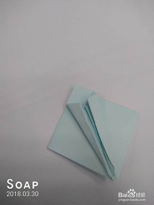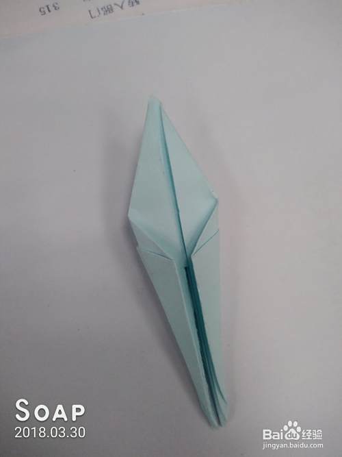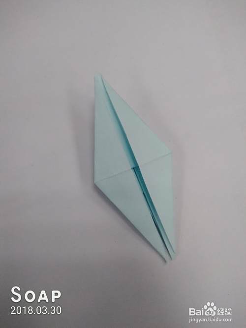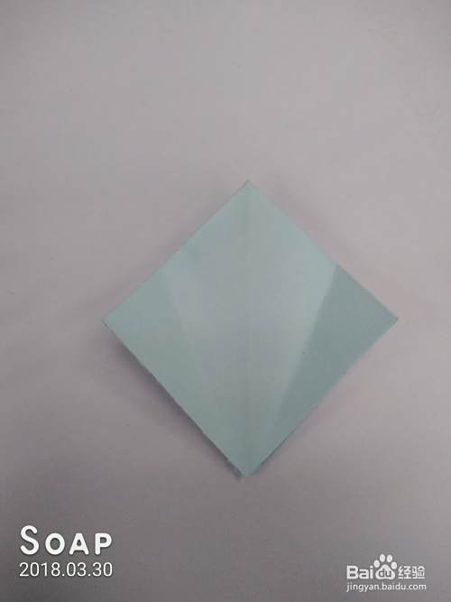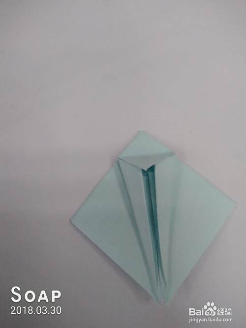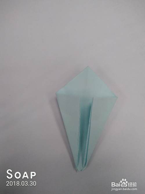 再对准中线将两边往里面折第二次,把上面多余的三角形往下折。