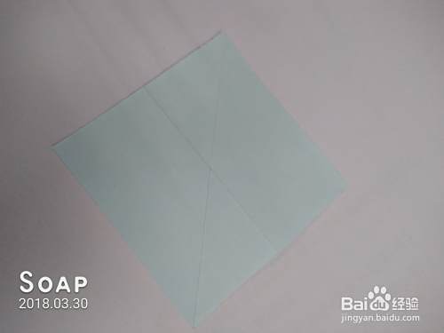 然后翻过来,对准中间线条将两边往里面折,然后摊开,可以看到折出一条印记。