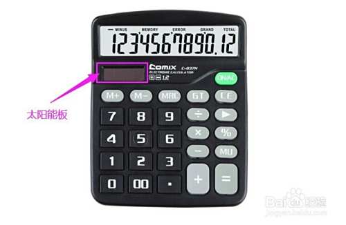 太阳能板:太阳能板虽小,但是它可以为计算器供电,计算器的耗电比较低,天气好时,太阳能就足够供电了。