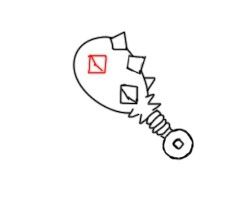 接着,在棒槌部分,的右下勾画一个刺,用四边形并在里边用两条线分割。