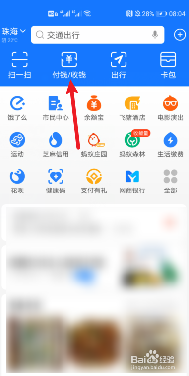 打开支付宝主页,点击【收钱】图标。