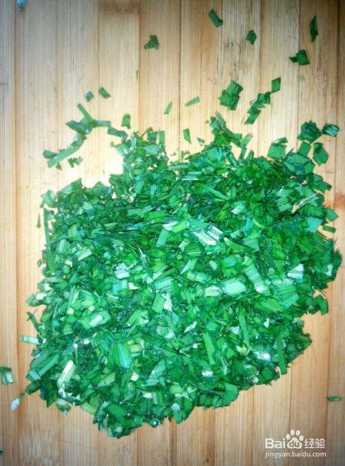把准备好的韭菜切碎,由于刀功问题,切的不是沫,随意了个人认为这样更有口感!