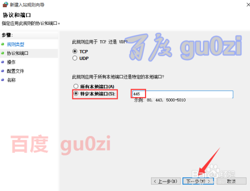 主要的设定在规则上,我们对入站进行规则的创建,类型选择 端口,