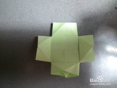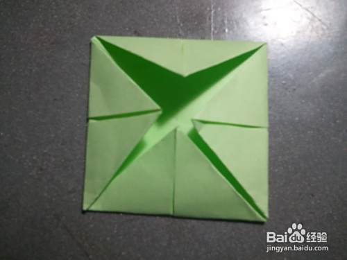 打开, 四角向中间对折。如图