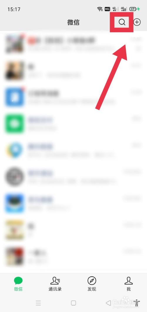 首先我们打开微信,进入微信界面,点击右上角的搜索图标。