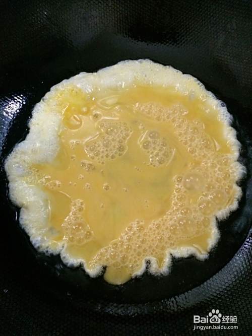 锅里放油烧热,下鸡蛋炒散后盛起。