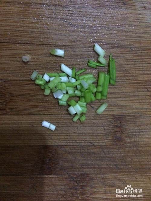 把2个鸡蛋打散,木耳泡发好小葱洗干净切好备用。