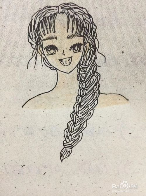 首先在白纸上,用黑色碳素笔画出售货员的头部轮廓。我们用笔画出售货员的五官和发型。