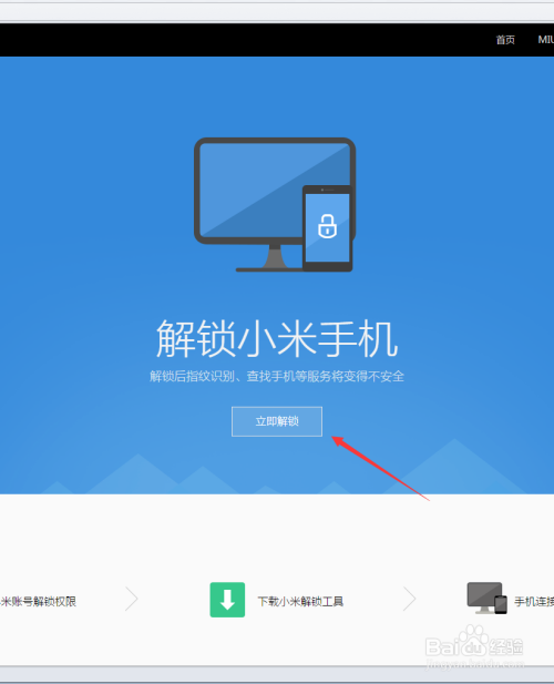 需要先去解锁bootloader,百度搜索“申请解锁小米手机”,点击申请解锁!