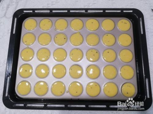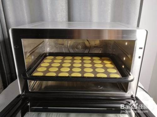 预热烤箱,170度预热。将面糊倒入裱花袋,剪口,然后在每个小圆位置挤上适量面糊,不用挤很多,会慢慢摊开!一盘是35个。