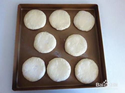 最后再把小面团揉圆成,擀成1厘米厚的小饼。这时候,如果想吃油大一点的就可以用平底锅烙,两面油汪汪的小油饼很好吃,可以烙带油的也可以烙成不放油的。 我是用烤箱烘烤了,比较省事,家里有烤箱的可以选择我这个方法