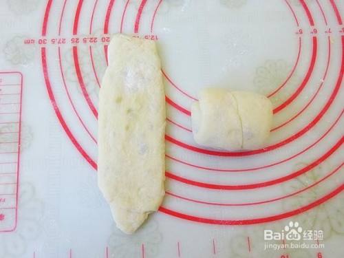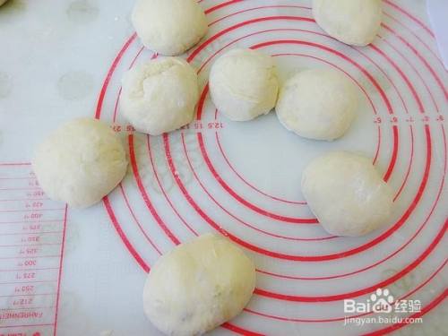取出发酵好的面团揉匀排气,然后分成小剂子,大小自定,我分了8份。每一份先简单团一下