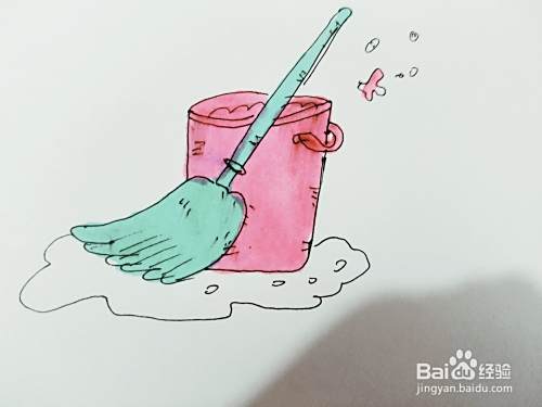 爱干净的人都知道,拖把和桶是打扫卫生的必备,那么小编来为大家画一下拖把和桶简笔画。