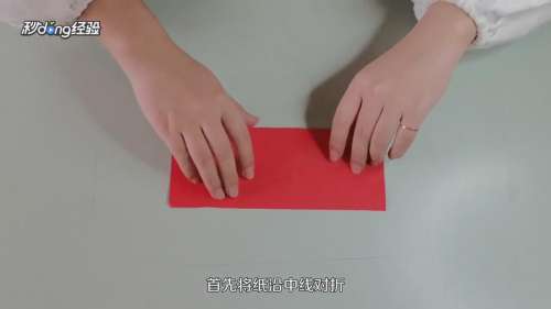 1将纸沿中线对折。