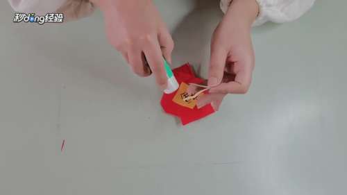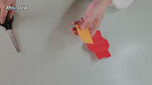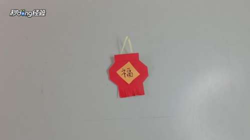 11将黄纸剪出合适大小贴在灯笼上。