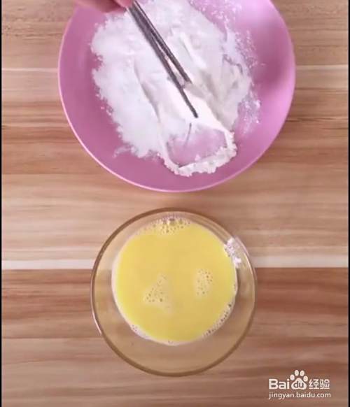 将豆腐沾满淀粉之后,在沾上蛋液~