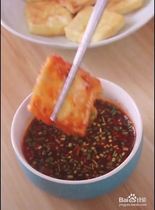 锅中烧油,油热将豆腐下锅,煎至双面金黄~