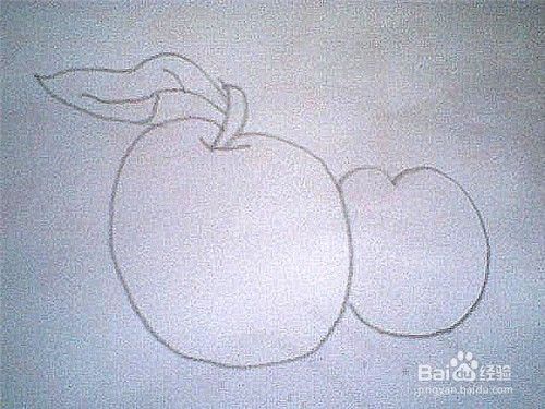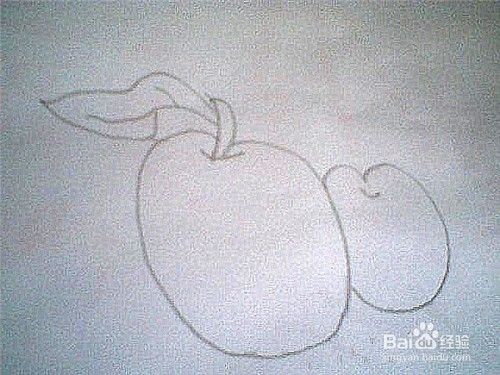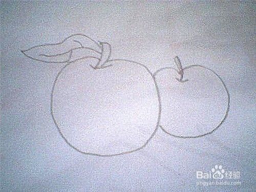往上面再画一个苹果把,看,简笔画两个苹果画完了。