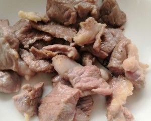 锅热放油,油热放入肉片,炒到变白盛出备用。