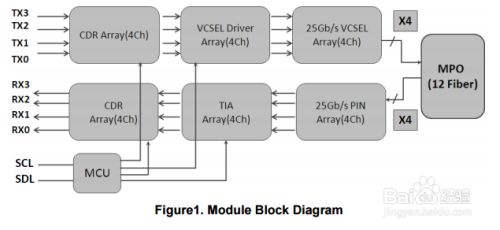 下图是100G QSFP28 SR4 100m光模块工作原理图