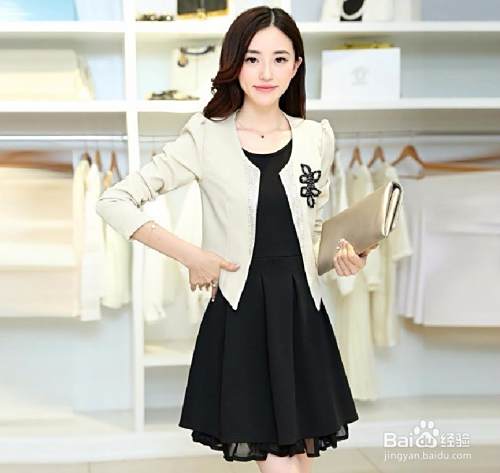 黑色背心裙是一款非常显瘦、低调又沉稳的服饰,搭配一件米色外套,简约、大气又很干练。