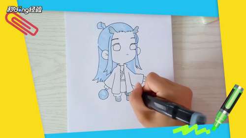 4用别的颜色把敖丙的衣服、眼睛涂上颜色。