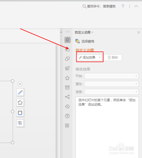 在右侧弹出的侧边栏中点击【添加效果】选项