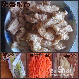 大豆植物蛋白用温水泡20分钟,沥干水分。
