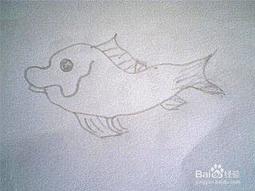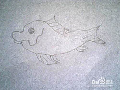 在身体下方的线条上也起笔画出来鱼鳍,这幅图画就画完了。
