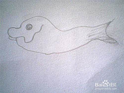 然后画鱼嘴的下部分和鱼身体的部分线条,