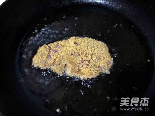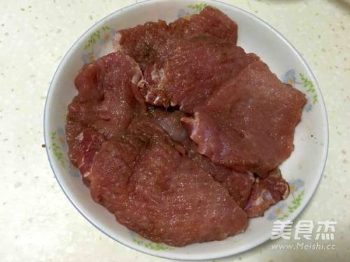 锅内下油烧热,放入里脊肉,中小火煎至两面金黄