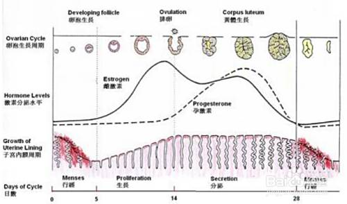 3、分泌期就卵巢的变化而言又称黄体期,历时14天左右,即月经周期第15-28天。这期是由于上一期末,成熟的卵泡排卵后生成黄体,黄体所分泌的孕激素作用于子宫内膜的结果。孕激素能使已增厚的子宫内膜中血管增生、充血,并使子宫腺体扩经弯曲而分泌粘液。这些内膜变化有利于受精卵着床(受孕)。假如这次月经周期中未受孕黄体就会由于得不到有关激素的支持作用而发生萎缩,从而停止分泌孕激素和雌激素。当血液中这两种性激素降到极低水平时,肥厚的子宫内膜由于失激素的支持而发生坏死,出血和脱落,从此开始进(月)经期。