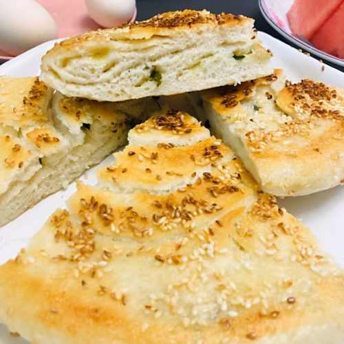 88.热气腾腾、香喷喷的上海羌饼出炉啦,切开还能看出羌饼的层次,表皮很松脆呢。END