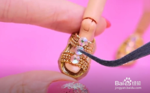 在脚面上粘上亮片装饰