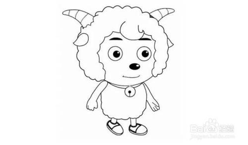 画出喜羊羊的身体,再画出两只胳膊和手,手指的小细节要注意了,接着画出戴在脖子上的铃铛。