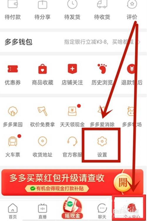 1、打开拼多多,点击【个人中心】,点击【设置】,