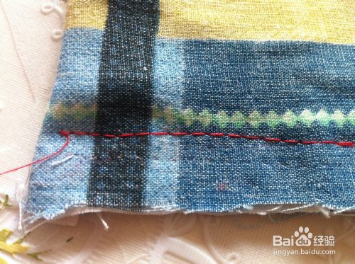 将底边缝完如图放置,两侧都缝完边底边是这样的。