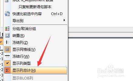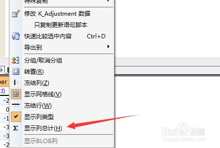 进行点击结果之后,弹出了下拉菜单选中为 显示列总计 的选项。