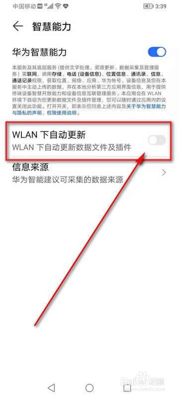 将“WLAN下自动更新”旁的小滑块点暗即可关闭。