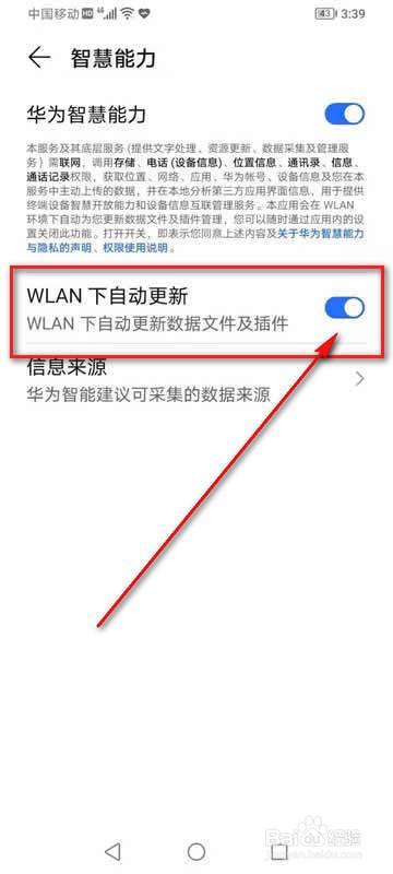 将“WLAN下自动更新”旁的小滑块点亮即可开启。