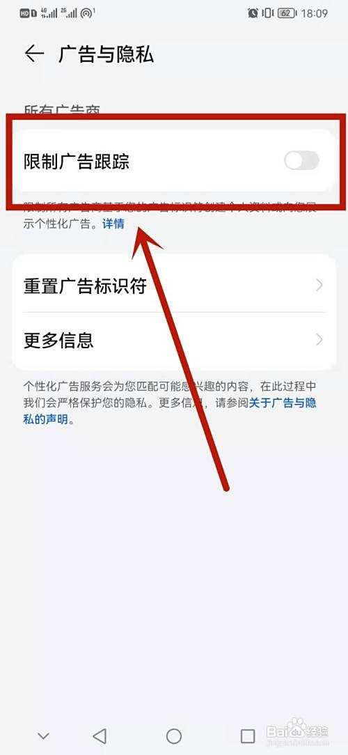 最后,找到【限制广告跟踪】选项,点击右侧按钮即可。