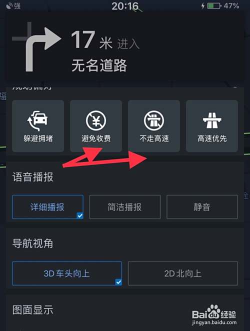 我们还可以设置不经过收费站,或者不经过高速,这些都是可以自己来设置的,设置好了以后就不会按路线来走。