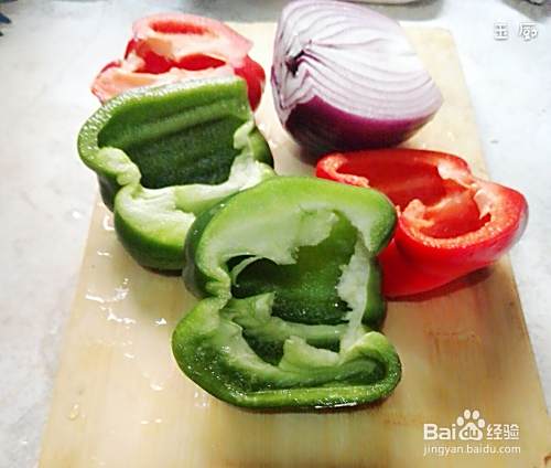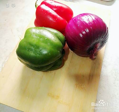 准备好食材,先把柿子椒洗一下再切开,取出里面的辣椒籽。洋葱只需要切一半出来,另一半用来炒其他菜。因为今天的主角是柿子椒呢。